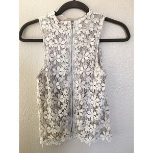 There is a zip in the back, and a cream tank top under the lace for more cover up. Great condition!