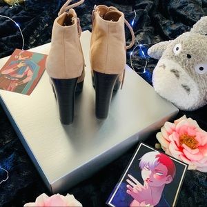 Cream Lace Up Open Toe Ankle Boot Heels