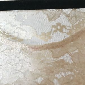 Cream lace wide-sleeved mini dress; unlined. As pictured, small makeup stain on front of neckline. Made by 1Audrey3, and sold by NastyGal.