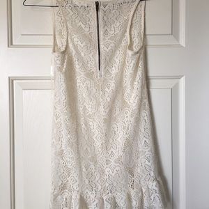 Adorable lace dress that is slightly See through! Throw it over a swimsuit, or a tank top with jeans and boots.. really anything!! Zipper in back to add texture :)