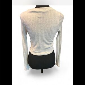 Stylish cream ribbed sweater with lace-up front. Perfect for layering. Amazing stretch fits snug and comfy soft