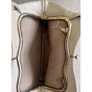 Cream Leather Women's Coin Wallet Used Zip Pockets Compact