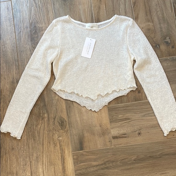 Elevate your style with this elegant cream long sleeve top. Perfect for any occasion, this top offers a chic and comfortable fit. size medium.