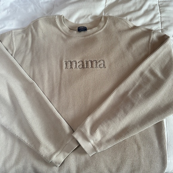 Cozy cream ribbed sweater with 'Mama' embroidery. Perfect for casual wear.