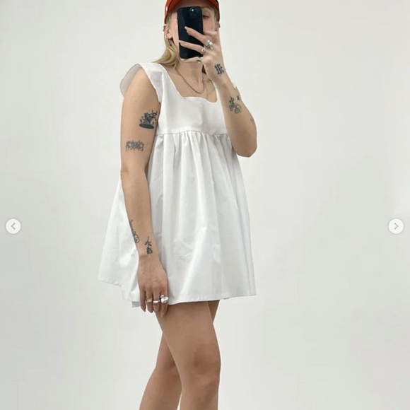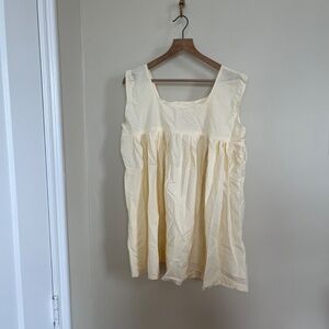 Cream cotton babydoll dress with pockets from Maya Meyer. Smallest size 0 but still and oversized fit, would also look very cute with wide leg jeans. BRAND NEW NEVER WORN. #babydoll #dresseswithpockets