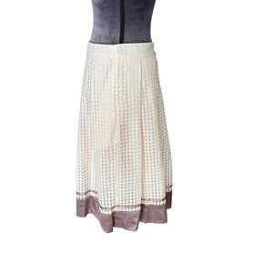 Cream Midi Pleated Skirt With Brown Satin Hem By Three Paper Dolls