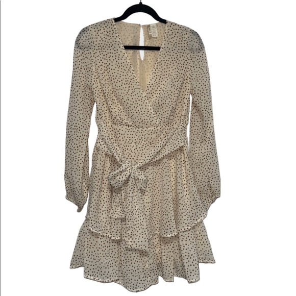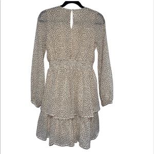 Cream with brown dots mini Dress with ruffles Size Medium