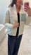Like new - only worn a few times! Cream color with sherpa shoulders and a color-block zipper pocket. The pocket is more seafoam green to me. For reference, I’m 5‘8”, 145lbs. I’m usually a medium, but this fits in a flattering way.