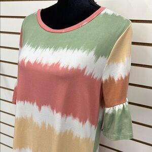 This playful and comfy multicolor striped dress by Cream N Sugar is the perfect blend of charm and functionality. Crafted from a soft, stretchy rayon blend, it features flounce sleeves, a relaxed silhouette, and—best of all—pockets! Whether you’re out running errands or enjoying a casual day out, this dress adds effortless style to your wardrobe.