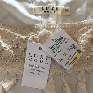 Cream off-the-shoulder blouse with tassel details. Vintage.