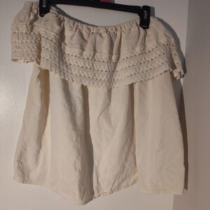 Cream Off-Shoulder Top with Lace Detail