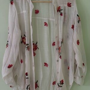 Cream Oversized 3/4 Sleeve Blouse with Embellishments