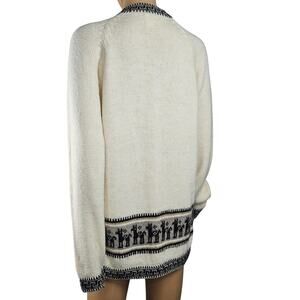 Cream PERU ALPACA Handknit Pullover Tunic Sweater Alpaca Wool Design. Round high neckline. Long sleeves with matching designed on cuffs, hemline and neckline. A band of alpacas area knit around the waistband. Dolman sleeves.