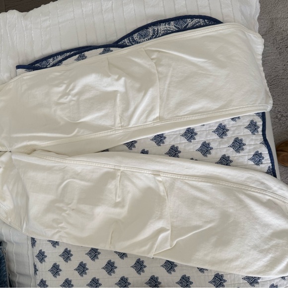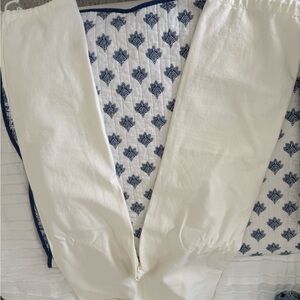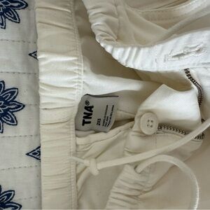 Comfortable cream pants with elastic waistband. Features a drawstring and button closure. Size XXS but fits like an XS