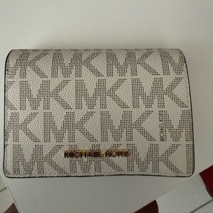 Stylish cream wallet with a unique pattern. Perfect for everyday use.