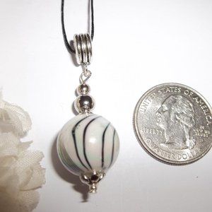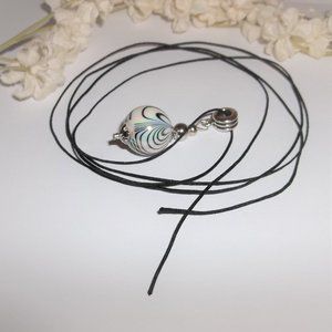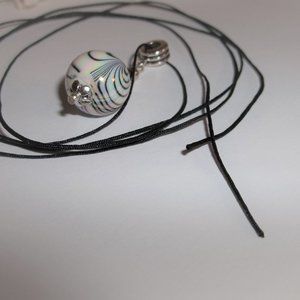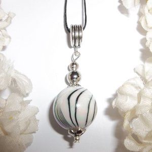 This pendant necklace is just mesmerizing! Brand new & handmade by me - wvluckygirl. Done with acrylic beads in cream, black and grey. The AB (aurora borealis) beads reflect the colors of pink, yellow, green, purple and orange in the light. Very mesmerizing! It also has silver toned costume jewelry beads which were antiqued in black. The pendant and decorative bail measure 1 3/4 inches tall and 5/8 inch wide. Comes with a 36 inch black nylon rope cord string. It is adjustable in that you can tie it to any length you want to wear it. Double it up around your neck and wear it as a short layered look choker. You could also wear it long with other necklaces for that trendy stacking look. You could also change up your look by adding it to a silver chain you already own. Very funky and unique. Buy it now before someone else does!