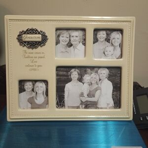 Beautiful cream photo frame. Holds 3, 3x3 , 1 4x6. Titled Generation. Family photos not included.