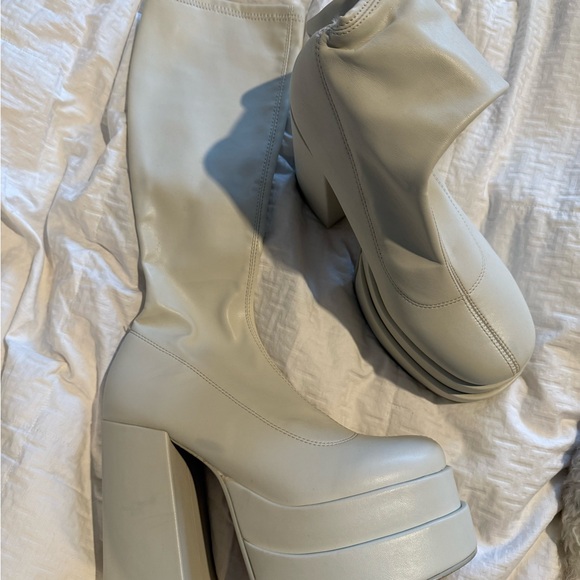 Elevate your style with these chic cream platform boots. Perfect for making a statement. Unworn. Women’s size 9. Smoke free home.