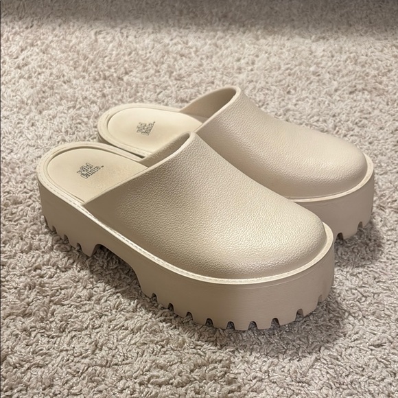 Step into comfort with these stylish cream platform clogs. Perfect for any casual outing.