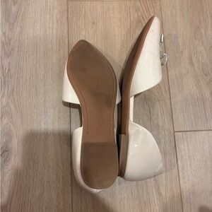 Chic cream flats. Features elegant bow accent. Perfect for versatile styling.