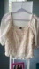 This charming blouse from Old Navy features a smocked bodice and 3/4 puff sleeves, offering a delightful blend of style and comfort. The cream color and ruffled details add a touch of elegance, making it a versatile addition to any wardrobe. Ruffled hem.