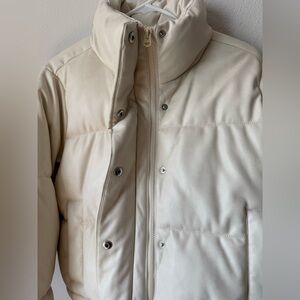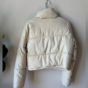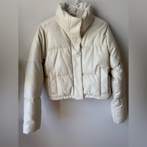 Stay warm and stylish with this cream puffer jacket. Perfect for chilly days.
