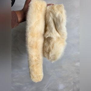 Cream Real Fur Pillbox Hat And Neck Wrap Collar Set Vintage