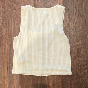 Chic cream tank with ribbed texture. Features button front for a stylish touch. Ideal for casual wear.