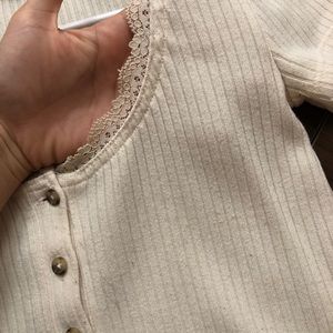 Cream Ribbed Button Up Top