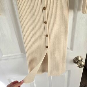 Elegant cream ribbed dress with a button-down front. Super stretchy! The buttons are actually fake/dress is sewn in front so there's no risk of it opening. worn just one time - excellent condition!