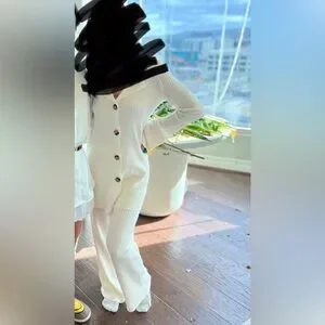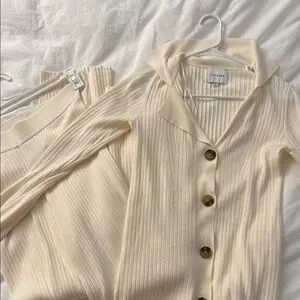 Cream Ribbed Button-Up Cardigan Set