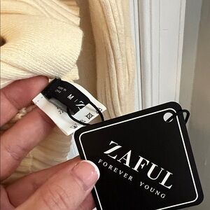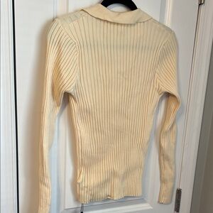 Cream Ribbed Button-Up Collared Sweater