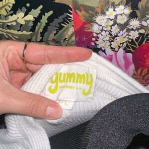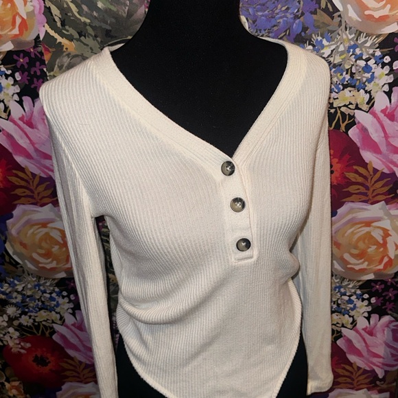 Stylish cream ribbed top with button-up design. Perfect for any occasion.