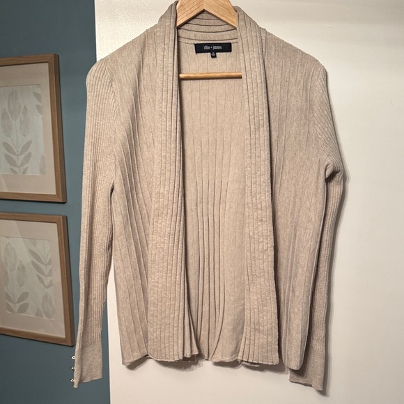 Elevate your wardrobe with the Chic Cream Cardigan by . This elegant piece offers a sophisticated look with its ribbed texture, perfect for any occasion.