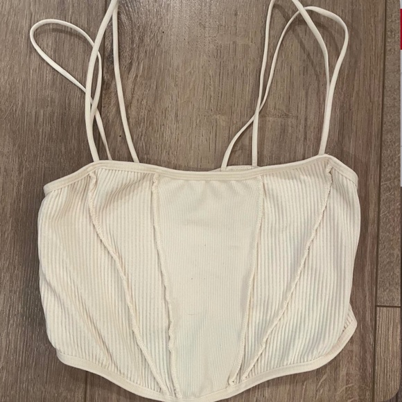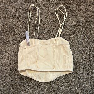 Stylish cream ribbed corset top. Perfect for layering or wearing alone. Urban outfitters