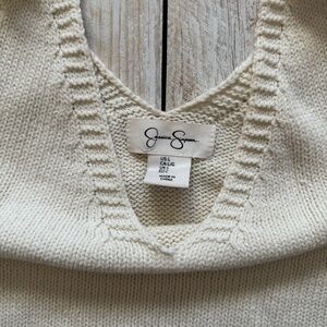 Cream Ribbed Cotton Blend Knit Sleeveless V-Neck Vest