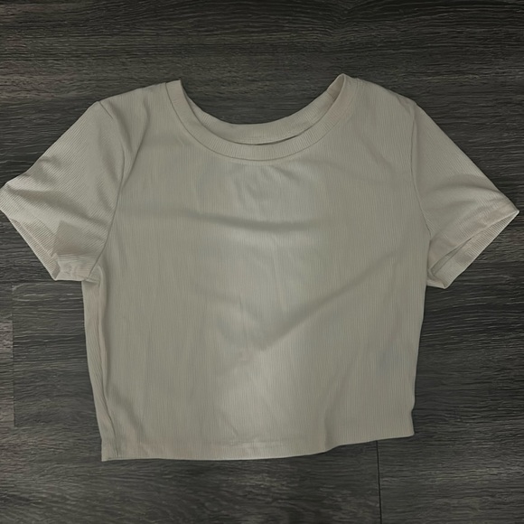 Unknown brand Cream Ribbed Crop Top. Size: L. Never worn/brand new (perfect condition).