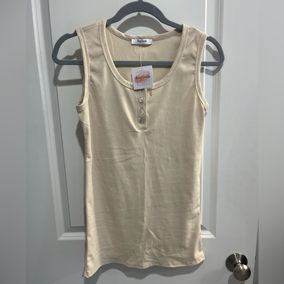 Cream Ribbed Henley Tank