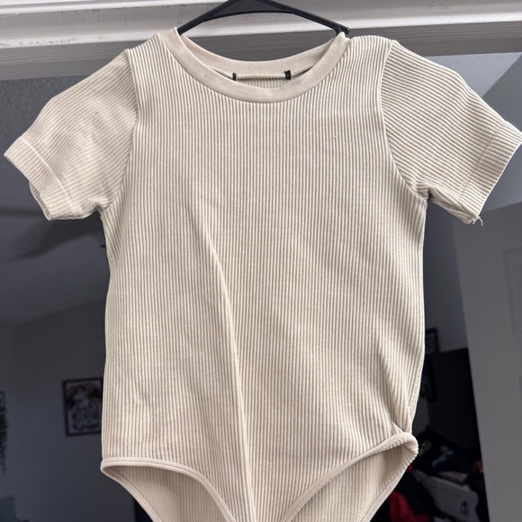 This cream ribbed kids one piece offers comfort and style for your little one. Perfect for any occasion.