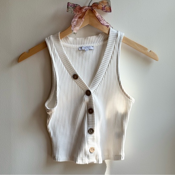 Simple and dainty cream ribbed crop top with button details π€β¨