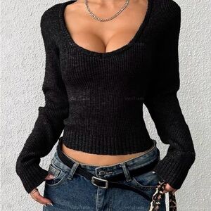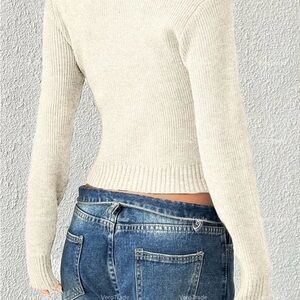 Stylish cream ribbed knit sweater with a scoop neckline. Perfect for casual outings. Sizes: XS, S, M, Large, X-Large