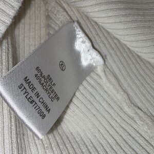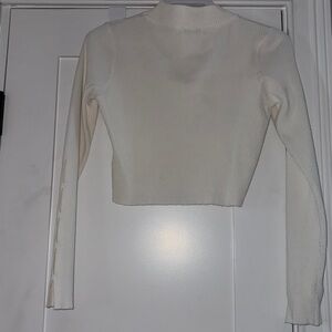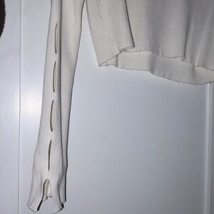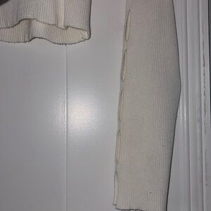 Stylish cream ribbed knit sweater with long sleeves. Perfect for a cozy look.