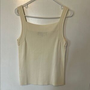 Elevate your wardrobe with this elegant cream ribbed knit tank top. Perfect for layering or wearing on its own, this top offers both style and comfort. Small stain on back.