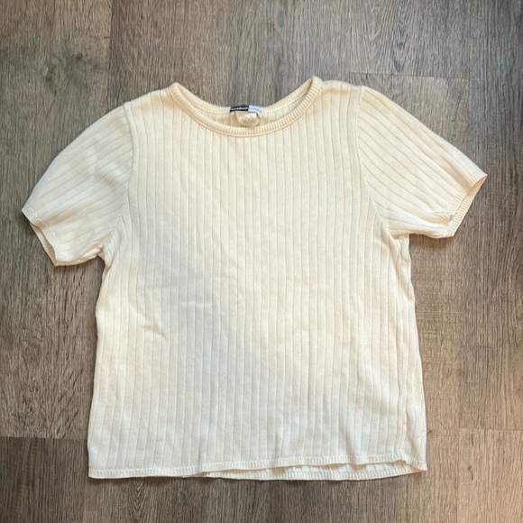 Stylish ribbed knit top. Soft and comfortable. Perfect for casual wear. Like a lightweight sweater.