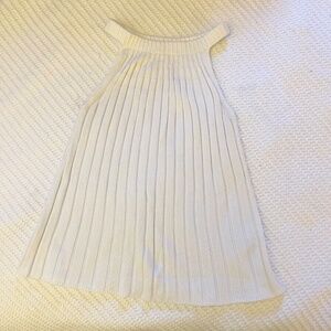 Elegant ribbed knit design. Sleeveless with a high neckline. Soft and comfortable fabric.