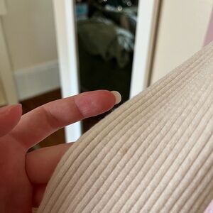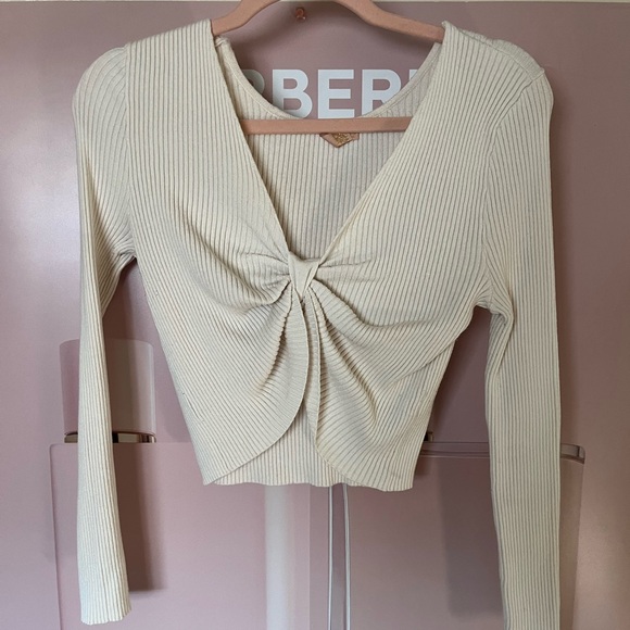Elevate your style with this elegant cream ribbed knit top. Perfect for any occasion, this top offers both comfort and sophistication.