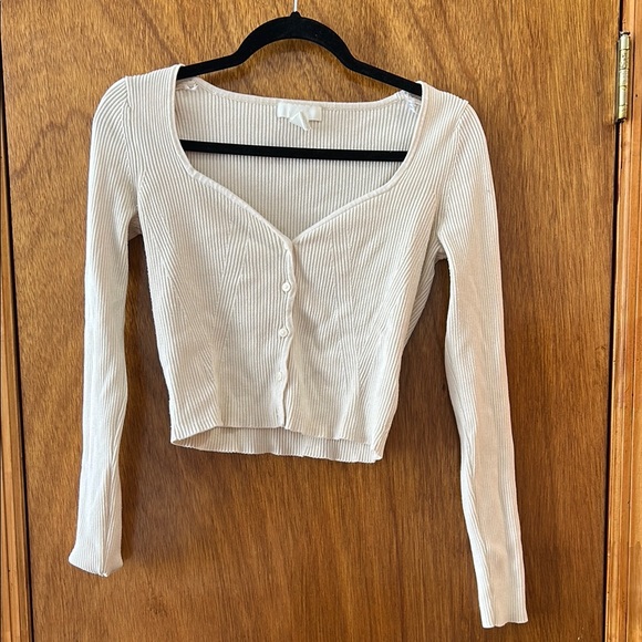 Cream cropped size small women’s ribbed long sleeve button up sweater