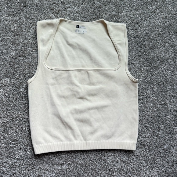 Cream Ribbed Square Neck Top