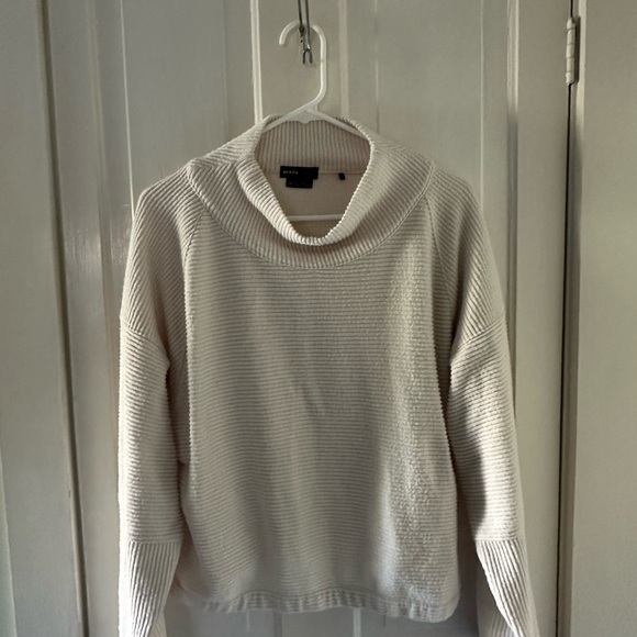 Cozy cream ribbed sweater with a stylish cowl neck.