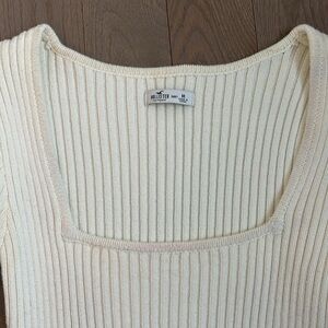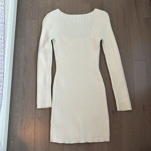 Elegant cream ribbed knit dress. Long sleeves with a square neckline. Perfect for any occasion. Short length
